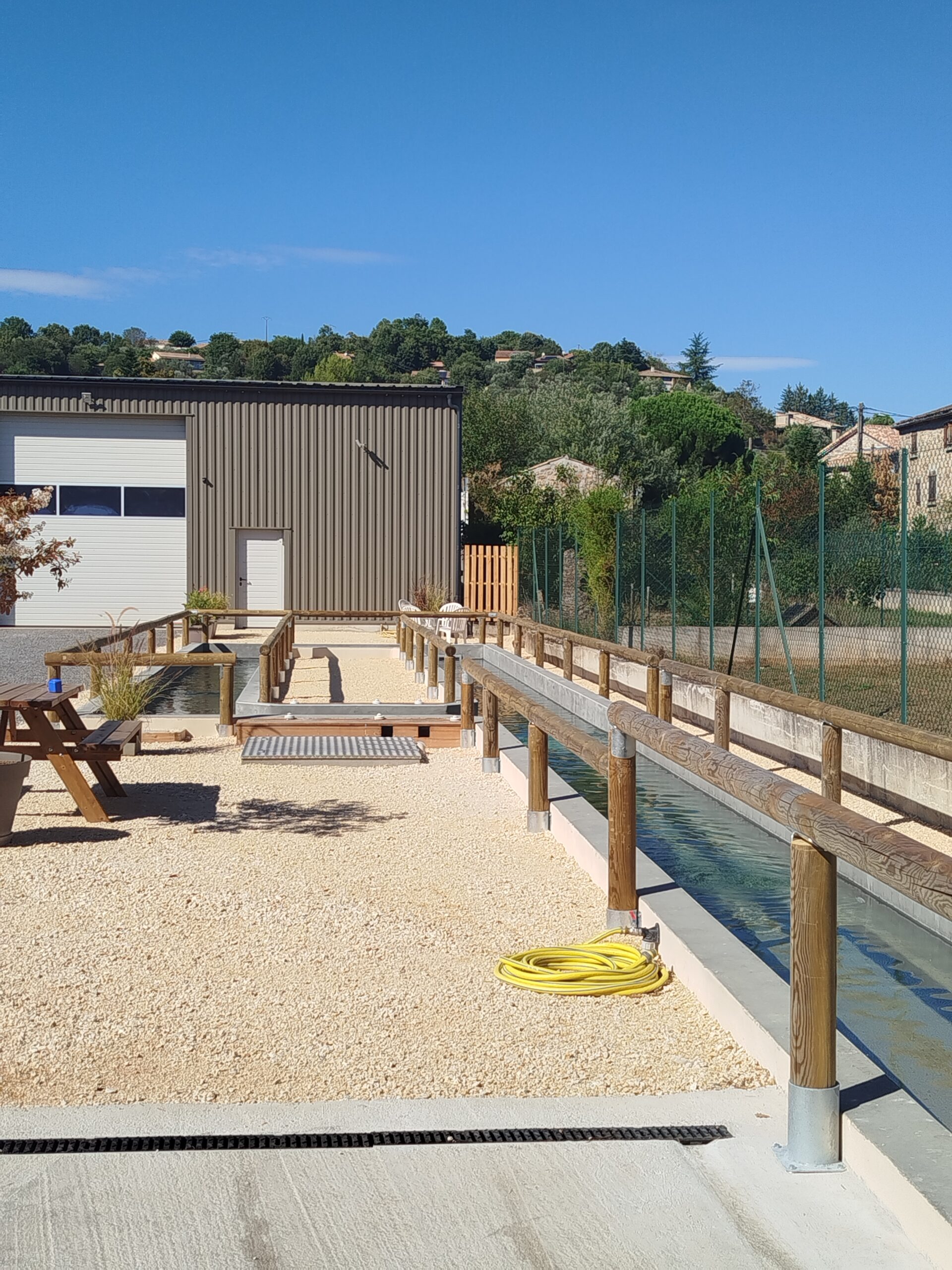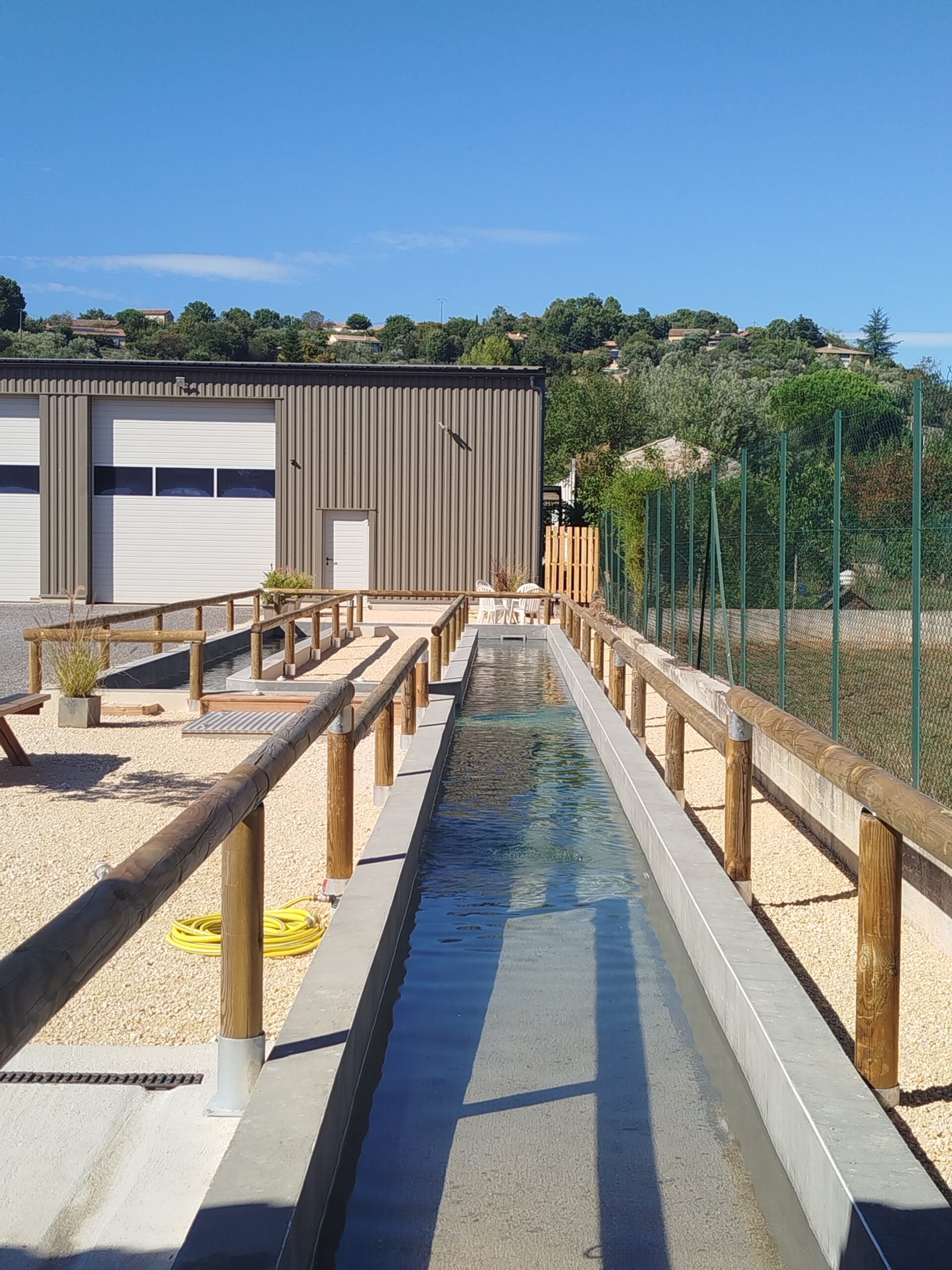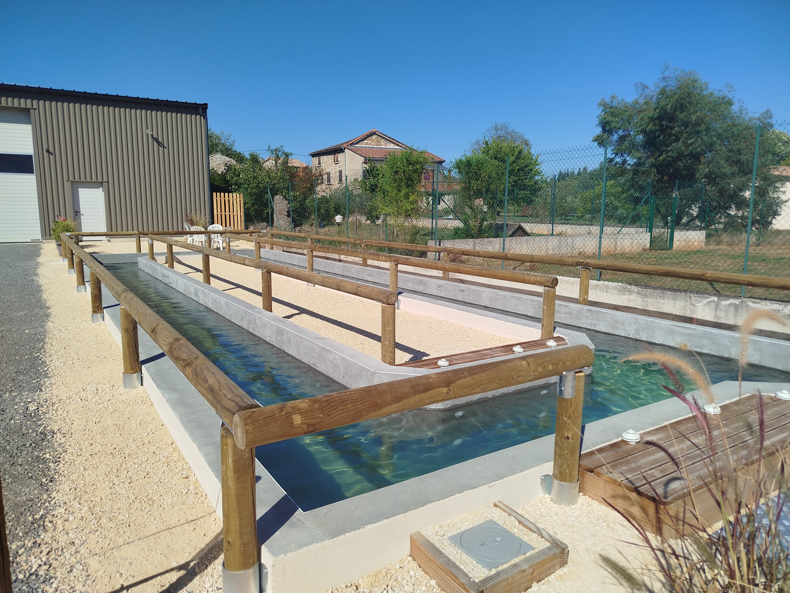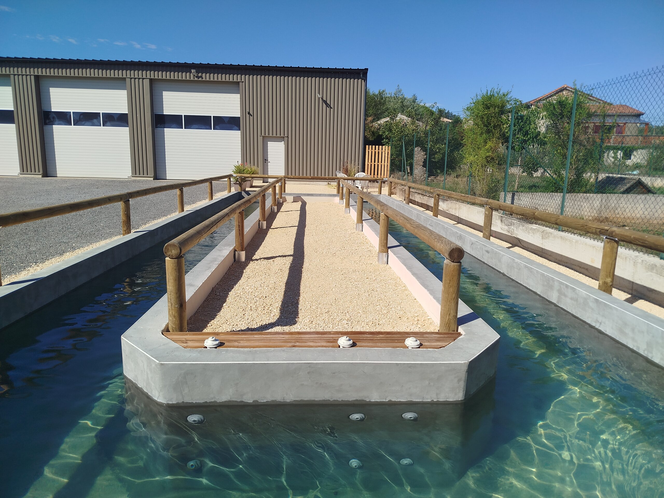 - 1 couloir de marche aquatique de 40 m de long et 1m 20 de large avec hauteur d’eau réglable de 95 à 115cm avec filtration et traitement BIO UV